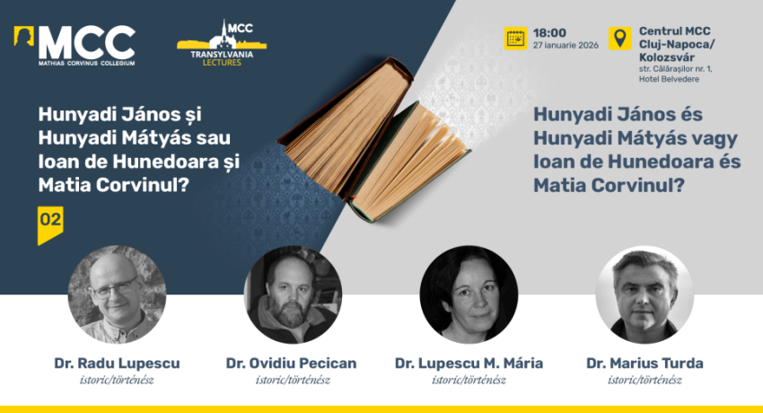A Mathias Corvinus Collegium Románok és magyarok a közös múlt tükrében című előadássorozat második összejövetele Hunyadi János és Mátyás király alakja köré épült. Január 27-én az MCC Kolozsvári Képzési Központban Dr. Radu Lupescu történész, a Sapientia EMTE oktatója, Dr. Ovidiu Pecican történész, író, a BBTE Történelem és Filozófia Karának oktatója, Dr. Lupescu Makó Mária, a BBTE Történelem és Filozófia Kar Magyar Történeti Intézetének egyetemi docense és Dr. Marius Turda történész, az Oxford Brookes Egyetem professzora beszélgettek a magyar és román közösség múltját egyaránt meghatározó személyiségekről.